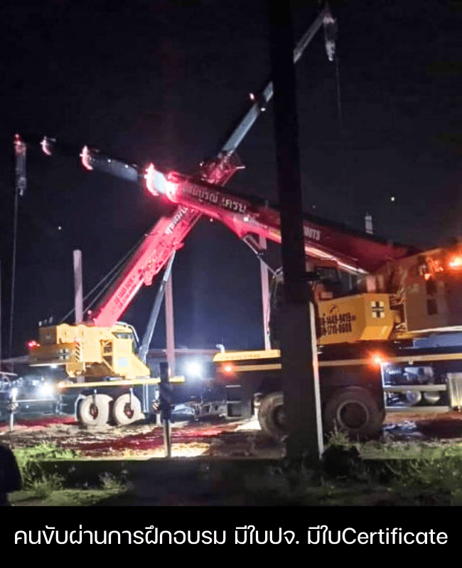 ทุกคันมีใบ ปจ.2 หรือ ใบ คป.2 แบบใหม่ล่าสุด พร้อมคนขับมีใบเซอร์ เข้างานเซฟตี้ตามนิคมอุตสาหกรรมได้ งานก่อสร้างโรงงาน-ยกโครงสร้างเหล็กขนาดใหญ่ งานยกแผ่นปูน พรีคาสท์ก่อสร้างอาคารและงานก่อสร้างโยธายกเสาไฟฟ้า งานยกย้ายเครื่องจักรอุตสาหกรรม ยกรางเครนโรงงาน งานติดตั้งเครื่องจักร-อุปกรณ์ที่สูง ติดตั้งป้ายทาวเวอร์ กู้ซากรถอุบัติเหตุ